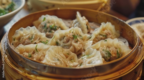 dumpling, steamer, asian cuisine, food photography, culinary arts, herb, presentation, appetising, epicure, comfort food, fine dining, texture, delicious, flavorful, home cooking, kitchen, eatery, ethnic food
