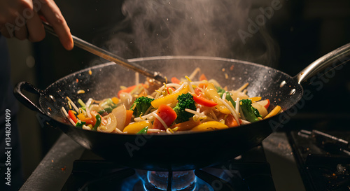 wok, stir fry, vegetable, meat, colourful, steaming, cooking, food photography, asian cuisine, chinese food, receipe, health food, delicious, vibrant, hot, fresh, ingredient, protein, dinner, lunch, meal, culinary, kitchen, eatery, gastronomy, tasty, appetising, soy sauce, ginger, garlic, broccoli, bell pepper, bean sprouts, home cooking