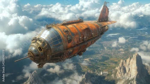 airship, sky, cloud, mountain, flight, vintage, retro, fantasy, adventure, aerial, travel, journey, exploration, zeppelin, dirigible, altitude, aviation, cloudscape, scenery, landscape, panorama, scenic, view, vista, perspective, height, atmosphere, nature, outdoors, wilderness, vale, peak, summit, rock, cliff, terrain, geology, environment, futuristic, imagined, imaginary, creativity, design, concept, art, illustration, three-dimensional