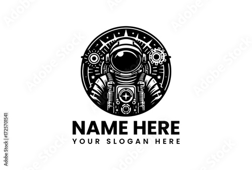 Steampunk Astronaut Logo Design with Detailed Gear and Stars.