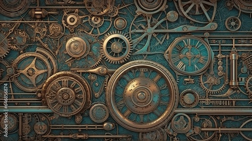 steampunk, backgrounds, industrial, vintage, retro, gears, machinery, clockwork, Victorian, technology, gears and cogs, mechanical, grunge, steam-powered, fantasy, industrial generative ai