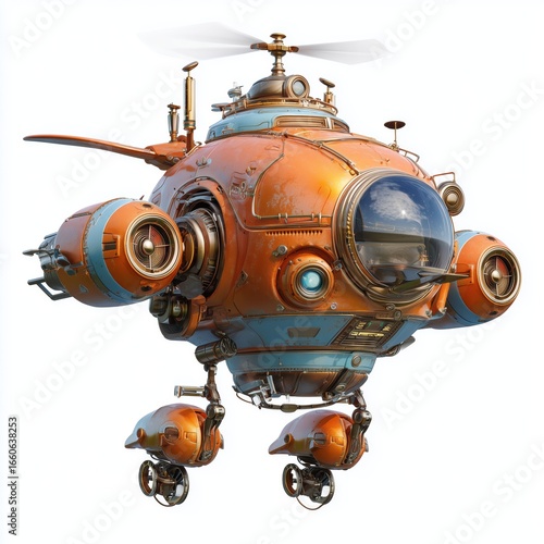 Steampunk Hovercraft - Futuristic Flying Machine , white background cut out PNG