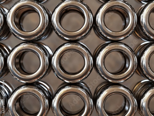Steel Rings Stacked in a Geometric Pattern Creating a Unique Texture and Visual Appeal for Industrial or Abstract Art Backgrounds