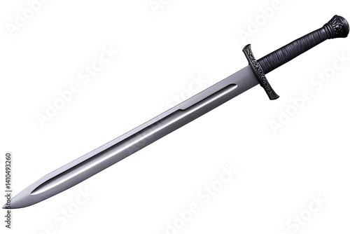 Steel sword gleams, handle wrapped. Sharp blade, ready for action. Fantasy or historical weaponry. transparent background