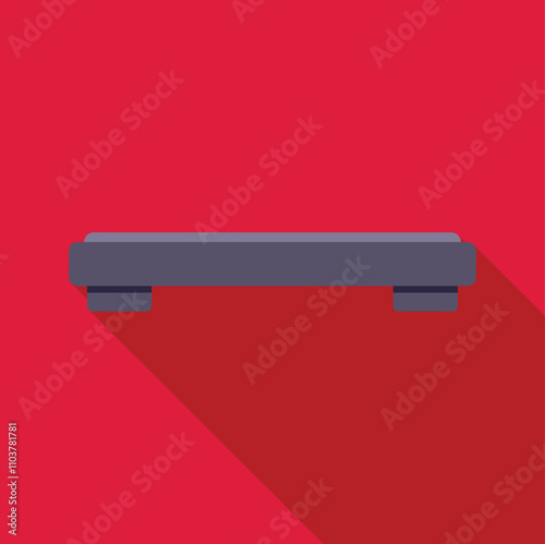 Step platform with long shadow on red background, ideal for aerobic workout and fitness training