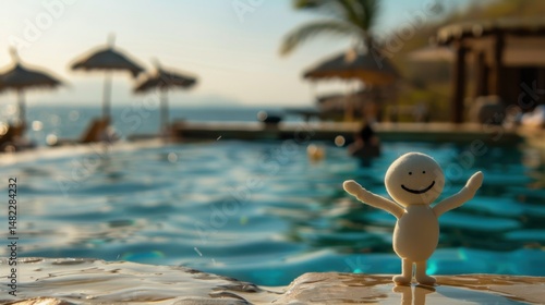 Stick Figure at a Resort: A stick figure relaxing by the pool at a resort, enjoying the serene atmosphere, warm weather, and luxury amenities during a well-deserved vacation.