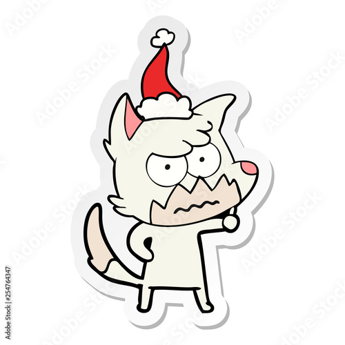 sticker cartoon of a annoyed fox wearing santa hat