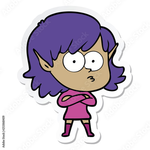 sticker of a cartoon elf girl staring