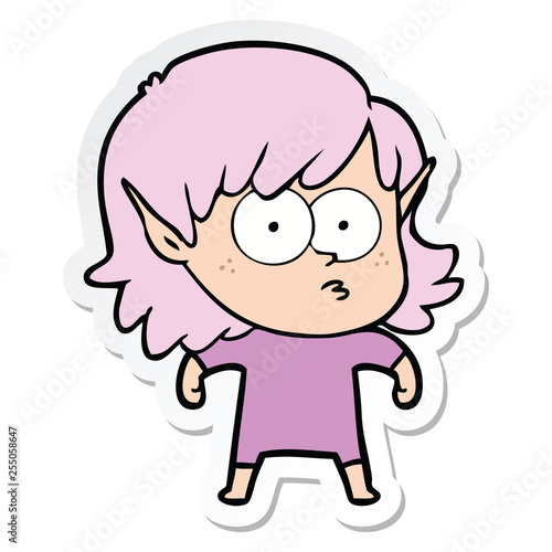sticker of a cartoon elf girl staring
