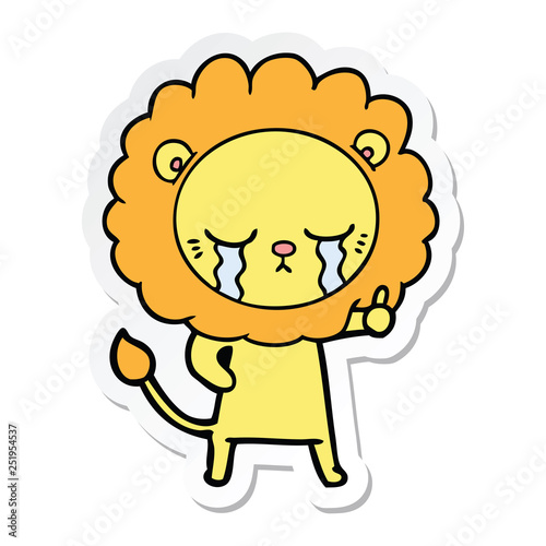 sticker of a crying cartoon lion