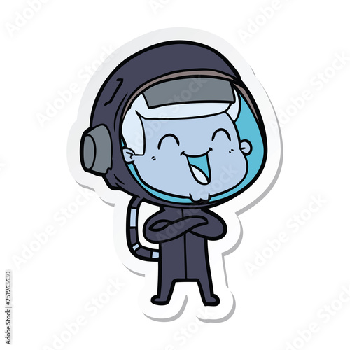 sticker of a happy cartoon astronaut