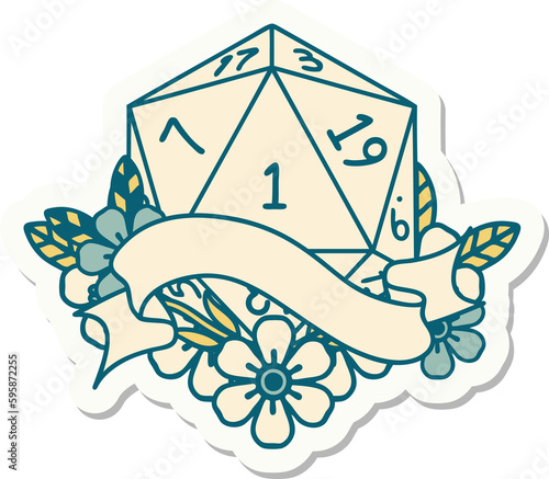 natural, 1, 1, dice, die, unlucky, bankruptcy, disaster, bad, luck, scroll, banner, dragon, game, art, illustration, signs, symbol, drawing, tattoo, retro, style, artwork, icon, sticker