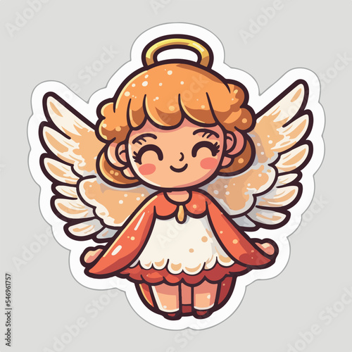 Sticker template with christmas angel, xmas wings angel stickers decoration. Winter holidays