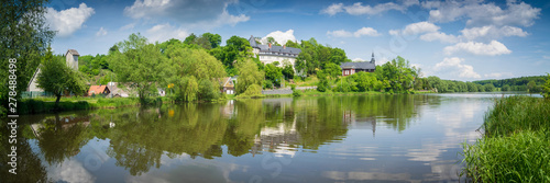 Stiege Panorama mit Schloss und Kirche am See - Harz in Deutschland