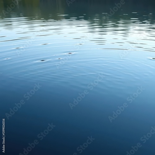 Still, glassy lake surface, gentle ripples disturb the calm reflection, outdoor, blue, fresh
