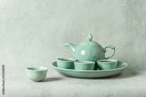 Still life with a tea set for drinking green tea