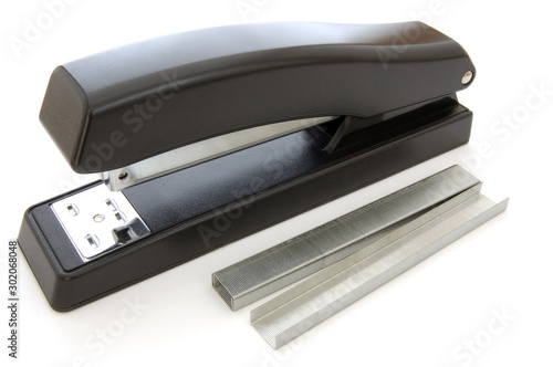 stationery, paper, page, office, isolated, document, consumables, bind, metal, white, black, stapler, staple