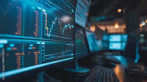stock data monitor analyzing data stock market in monitoring room on the data presented in the chart, forex trading graph, stock exchange trading online, financial investment