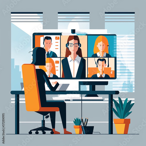 Stock Illustration of a Video Call Meeting, made with generative AI