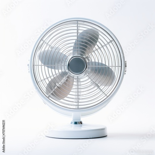 Stock image of an office desk fan on a white background, cooling, air circulation Generative AI
