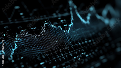 Stock market volatility visualized through fluctuating prices on a futuristic data platform, highlighting the dynamic and unpredictable nature of financial markets with real-time changes in stock valu