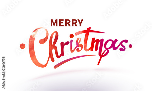Stock vector illustration text Merry Christmas lettering shiny, sparkly typeface red leaf. Red confetti Isolated on white background. Greeting card, poster, brochure or flyer template EPS10