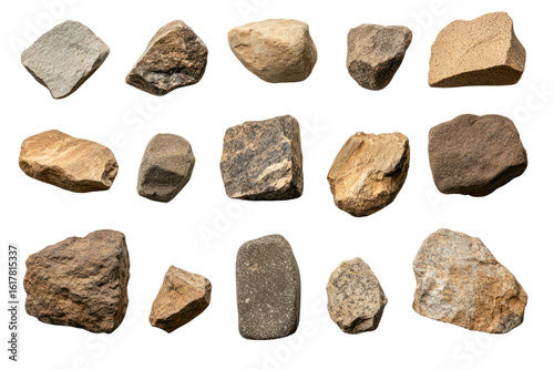 Stone Assortment: A curated assortment of diverse stones, each exhibiting unique textures and colors, presented in a neutral setting, providing a visual feast for geology and design enthusiasts.