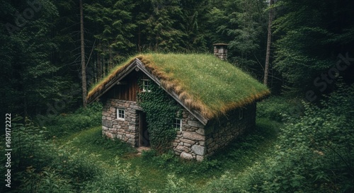 cabin, forest, stone, grass, roof, nature, greenery, rustic, house, timberland, tree, moss, foliage, ivy, chimney, wild, eco, hidden, shelter, retreat, solitude, peaceful, natural, leaf, plant, overgrown, root, calmness, survival, harmony, scenic, wilderness, meadow, hut, traditional, earthy, remote, quiet, architecture, structure, vegetation, rural, green, bungalow, simple, cosy, mossy