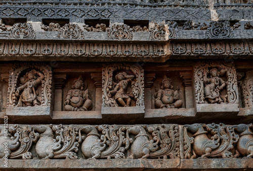 Stone Carving of Hoysaleshwara Temple in Halebidu. Karnataka. India.