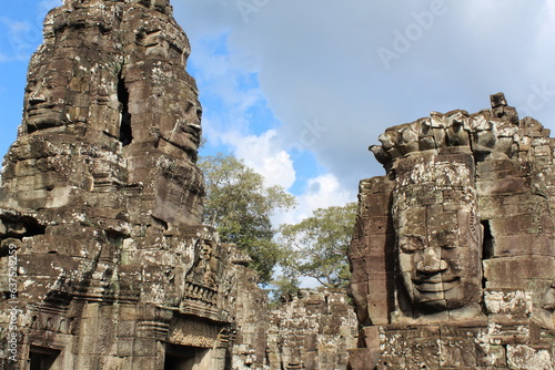 Stone carvings at the Angkor Wat and Angkor Thom temple complexes in northwestern Cambodia.