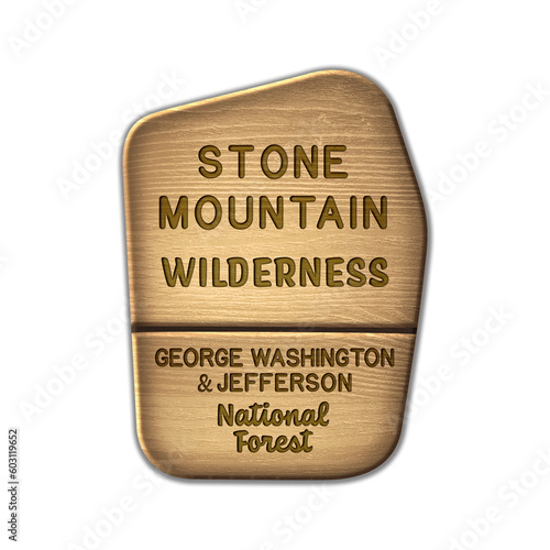 Stone Mountain National Wilderness, George Washington & Jefferson National Forest Virginia wood sign illustration on transparent background