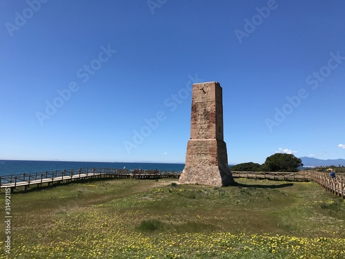 stone pillar on the Mediterranean coast of Andalusia Spain, the towers are placed along the whole coast, watch tower