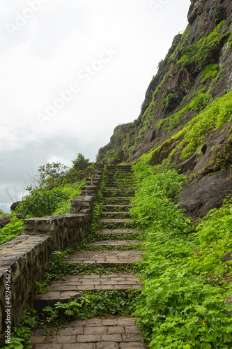 Stone stairs to Hatgad fort, Nashik, Maharashtra, India