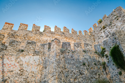 stone, wall, fortress, ancient, old, battlement, sky, closeup, fortification, closeup, blue, landmark, rock, cloud, historical, travel, architecture, tour tourism, castle, stone wall, cloudy, tower, jagged, close, up, rectangular