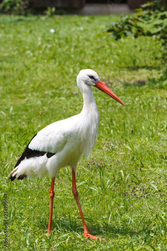 grass, stork, animal, vogel, meadow, green, orange, white