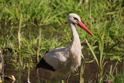 stork, bird, animal, white, nature, wildlife, feather, wild, red, standing, white stork, black, grass, green