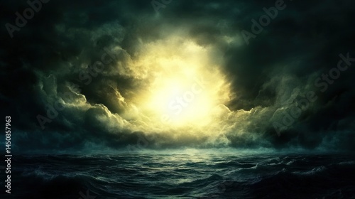 Stormy ocean seascape dark clouds bright light dramatic waves