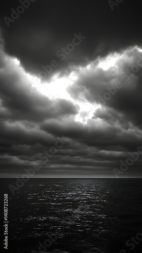 cloud, sky, ocean, sea, storm, weather, dark, grey, light, nature, landscape, photo, black-and-white, monochrome, dramatic, horizon, wave, water, cloudscape, gloomy, atmosphere, moody, daylight, sunlight, powerful, stormy, overcast, photo, view, huge, huge