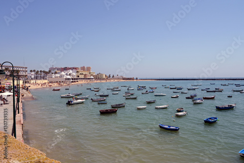 cadiz, beach, sandy shore, boat, people, parasol, swimming, atlantic, building, fort, castle, fortress, catalina, sun, balcony, bay window, wrought iron, rail, bathhouse, heaven, blue, cloud, white, port, maria, tour tourism, tour tourism, andalusia, spain