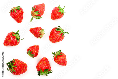 Strawberries isolated on white background with copy space for your text. Top view. Flat lay pattern