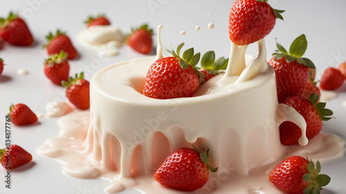 strawberry, droplet, fresh fruit, white background, closeup, motion blur, food photography, culinary arts, viscosity, bubble, surface tension, freshness, hydrodynamics