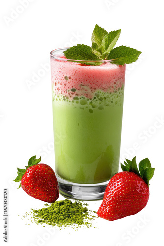 Strawberry Matcha Isolated on Transparent Background Creative Food Photography