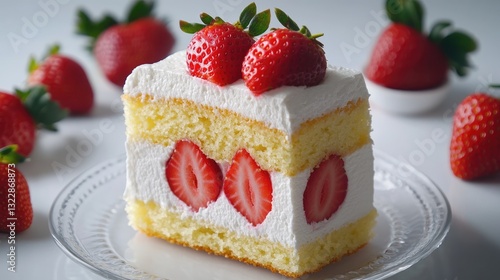 strawberry, shortcake, cake, dessert, food, sweet, fresh, white, cream, plate, glasses, red, yellow, delicious, tasty, bakery, baking, fruit, confectionery, pastry, sweetness, epicure, treat, snack, culinary, whipped, sponge, layer, layered, vanilla, homemade, sliced, juicy, ripe, summer, beautiful, appetising, photo, photo, still, life