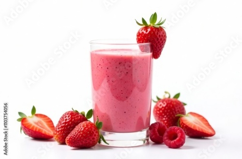 strawberry, fruit, smoothie, milk, drink, food, glasses, berry, cocktail, milkshake, dessert, shake, yogurt, fresh, healthy, sweet, red, breakfast, pink, juice, white, beverage, cold, isolated, summer