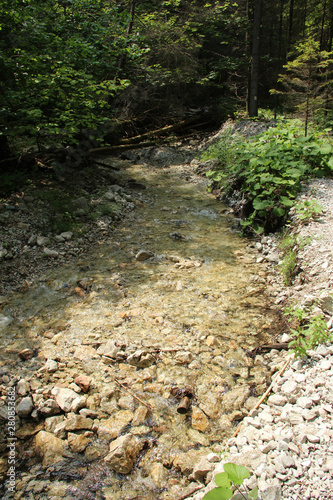 Stream peacefully and slowly flowing through the forest areas of the Slovak Paradise National Park