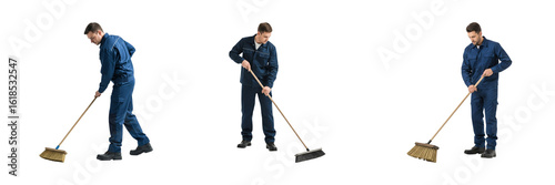 man, broom, cleaner, uniform, boot, bristle, hygiene, work, gear, staff, sweep, cleanup