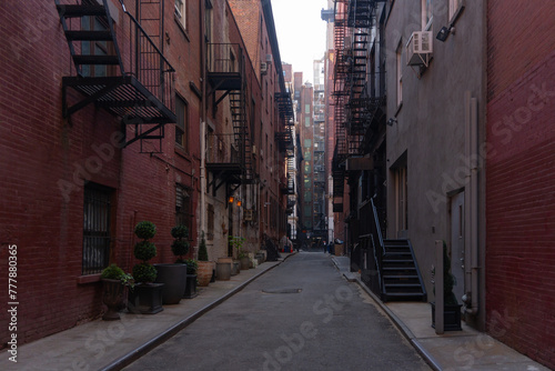 alley, architecture, brick, building, city, city landscape, downtown, facades, highrise, house, housing, metropolis, neighbourhood, new york city, new york city, nobody, old, outdoors, plant, road, sidewalk, staircase, street, town, travel, urban