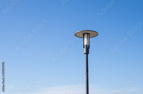 street light, blue skies, urban, city, lighting, infrastructure, lamp-post, clear sky, sky, street light, modern, minimalism, pole, electricity, power, daytime, outdoors, background, bright, sunny, cloud, minimalist, simple, technology, environment, city landscape, street, design, architecture, copy space, empty, no people