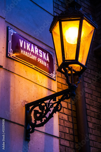 illuminated, lamp, architecture, background, czech republic, europa, european, night, prague, street, city, dark, empty, evening, exterior, lamp-post, lantern, light, lighting, light, old, retro, town, travel, urban