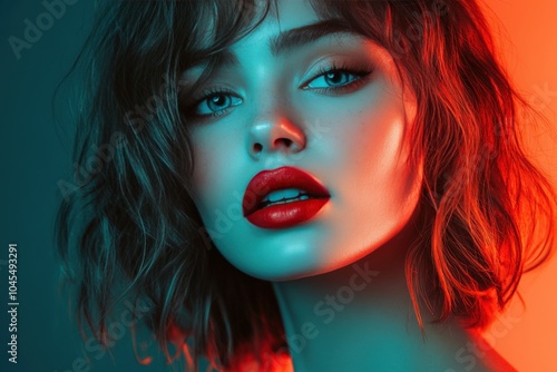 portrait, beauty, model, make-up, closeup, vibrant, colourful, fashion, photo, striking, lip, eye, cosmetic, artistic, aesthetic, emotion, youthful, detail, stylish, professional, creative, modern, lighting, confident, charming, trendy, glamourous, expressive, mood, captivating, editorial, face, hair, texture, fashion model, visual arts, innovative